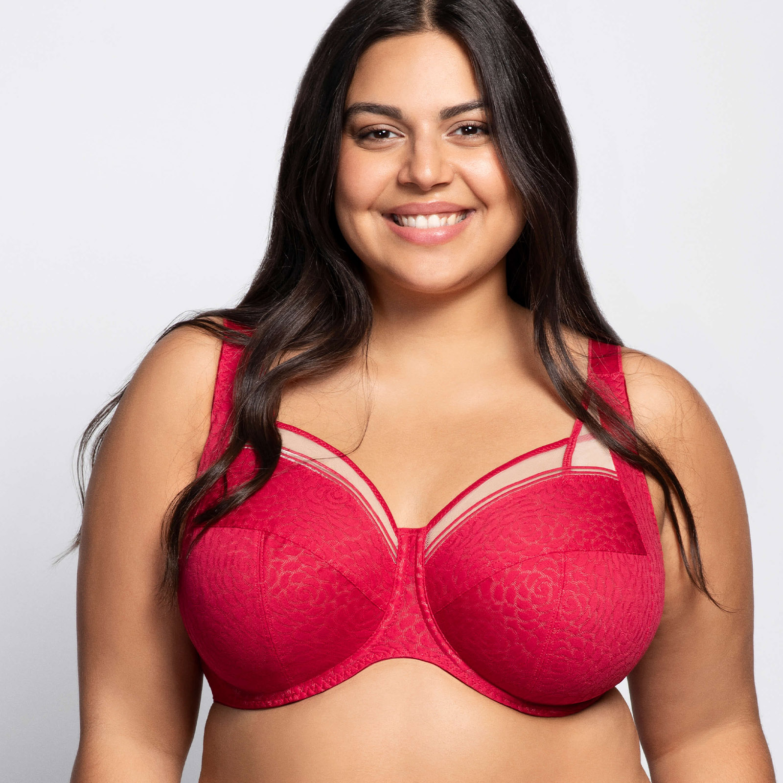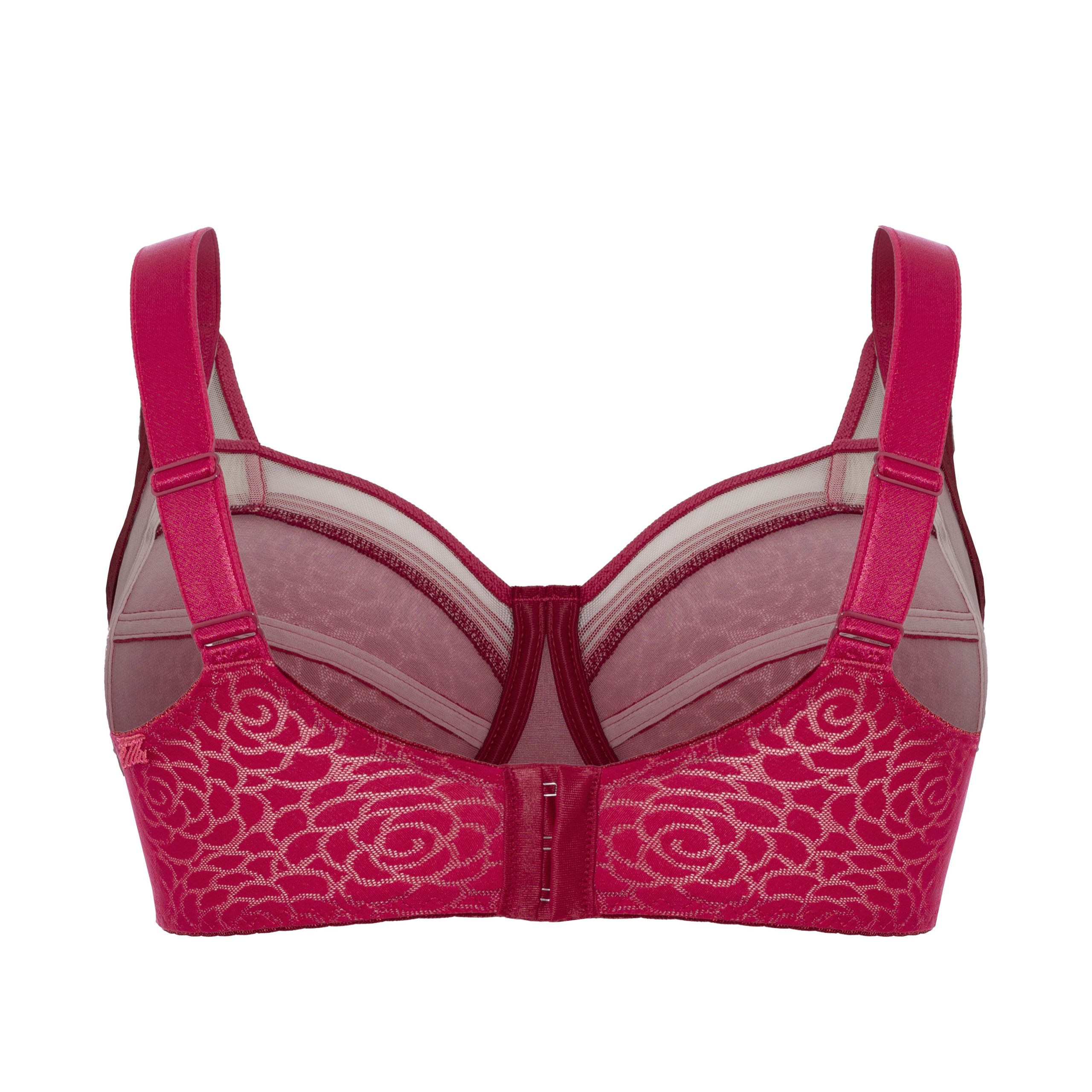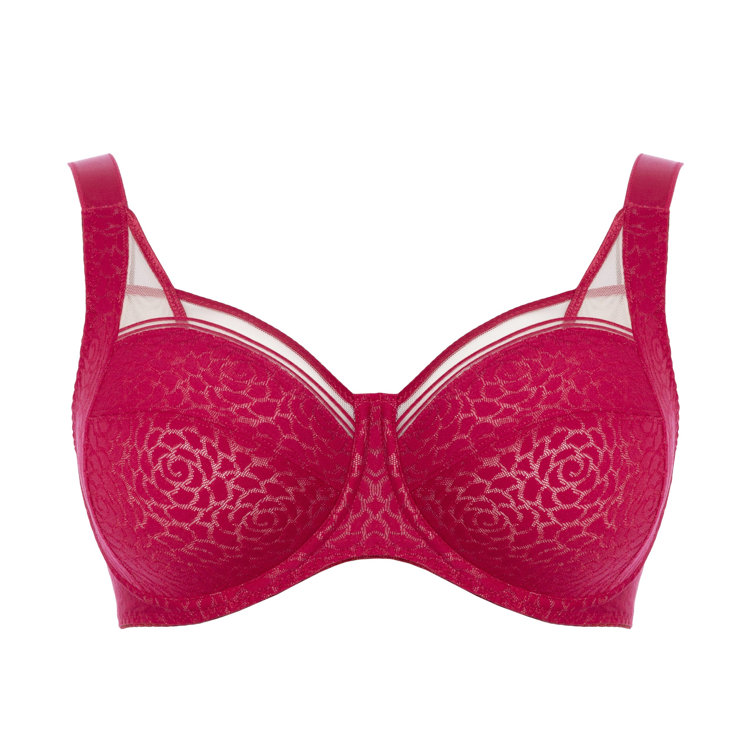 Die vorgeformten Cups mit Bügeln sorgen für eine zuverlässige Anhebung und eine natürliche, harmonische Brustform. Das feine, semi-transparente Material mit elegantem Rosenmuster verleiht dem BH eine edle Optik, während die durchdachte Konstruktion selbst bei größeren Cup-Größen für ein sicheres Tragegefühl sorgt.